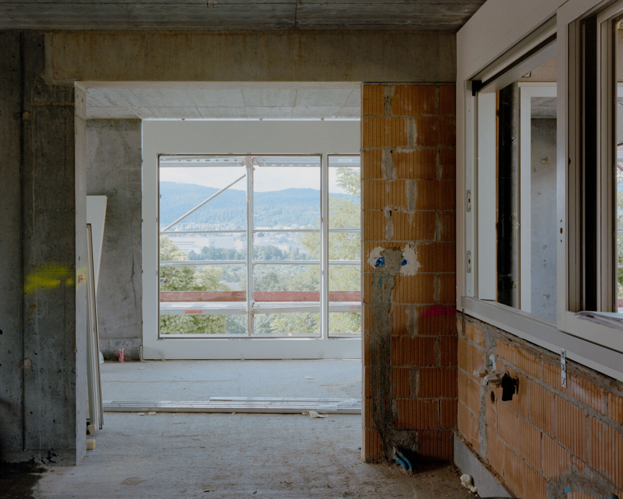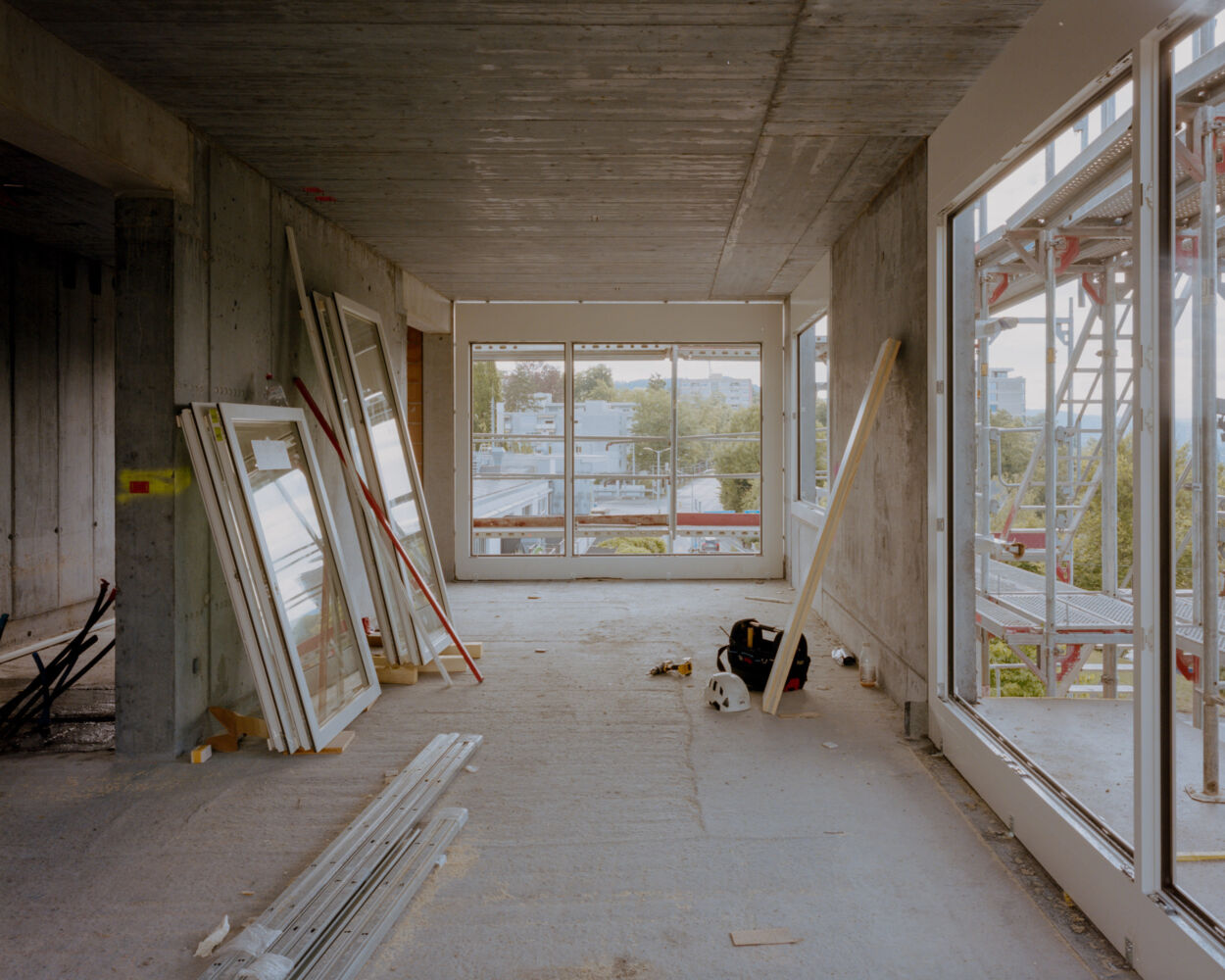 Der Neubau des Doppelmehrfamilienhauses bietet Platz für insgesamt 26 Wohnungen, die über zwei innenliegende Treppenhäuser erschlossen werden. Die Vor- und Rücksprünge des Gebäudes sowie die Anordnung der vertikalen Erschliessung und der Nasszellen ermöglichen eine optimale, mindestens zweiseitige Orientierung jeder Wohnung und sorgen dafür, dass möglichst viele Bewohner.innen von der beeidendruckenden Aussicht über Zürich profitieren können. Sämtliche Wohnungen verfügen über einen offenen Wohn- und Essraum, mit direktem Zugang zu einer geräumigen Loggia.